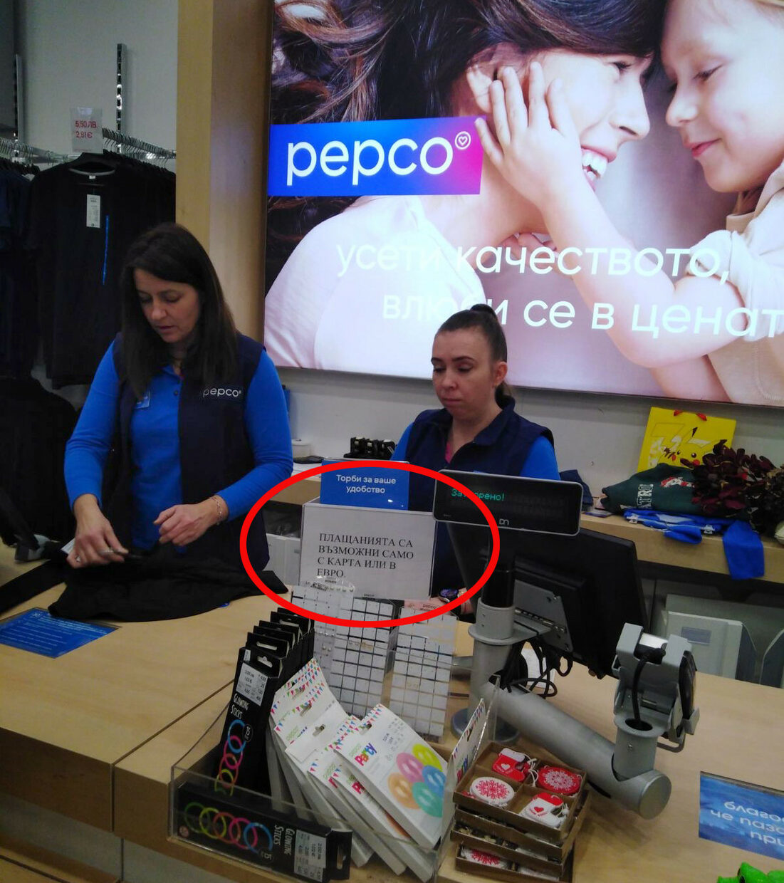 Продавачката зад щанда обяснила, че при отварянето на магазина разплащането било безпроблемно и с двете валути, но по обед възникнал технически проблем, който ще разрешат бързо.