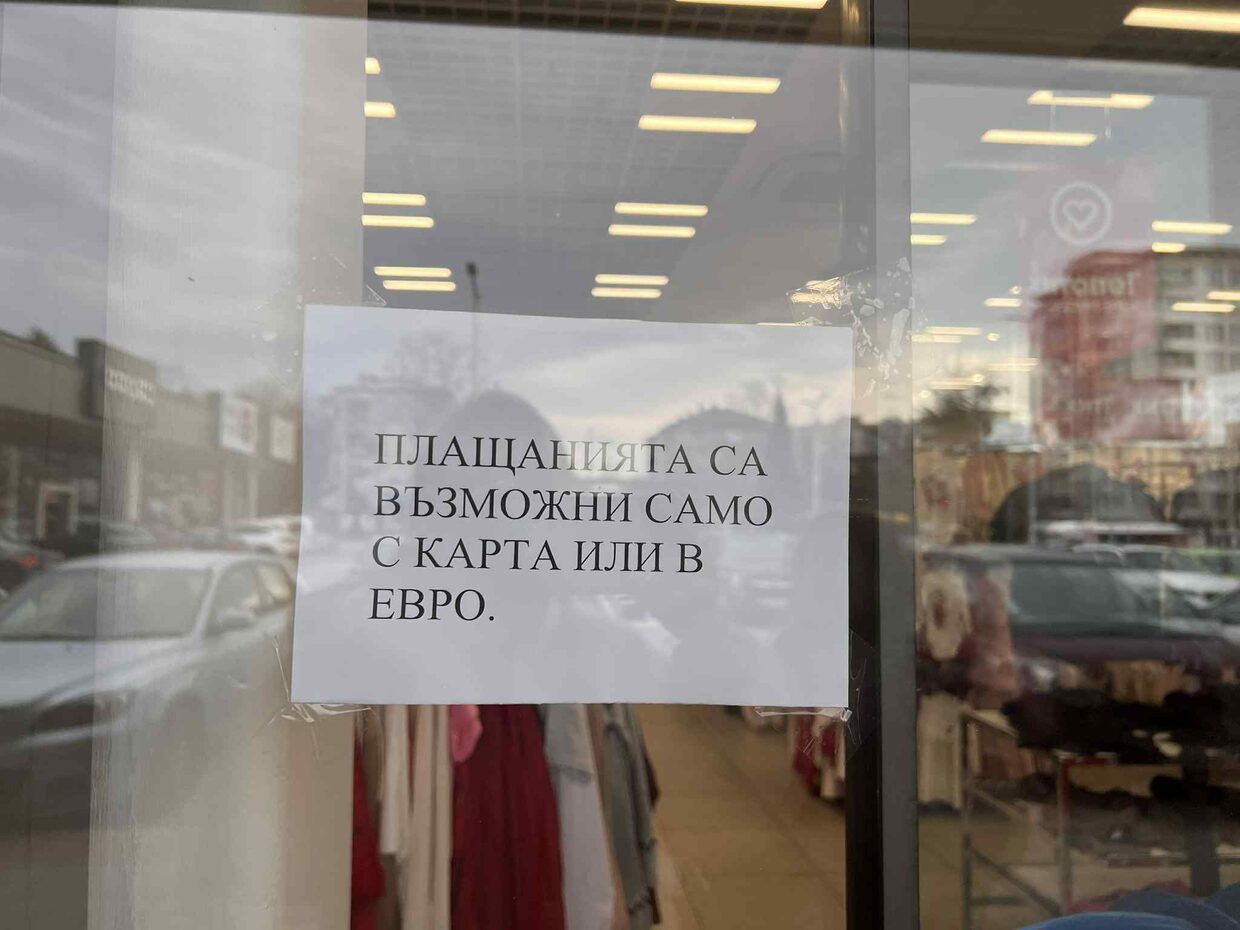 Наша проверка установи, че табела с надпис, че приема плащане само с карта и евро, е закачена и на входа на въпросния магазин и така законът е спазен.