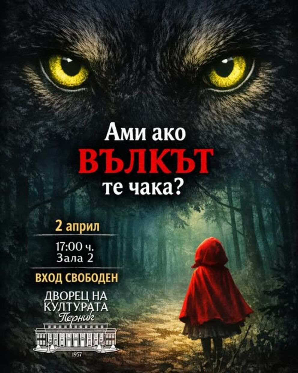🎭 „Червената шапчица“ идва в Двореца на културата – куклен театър, който наистина държи вниманието на децата.