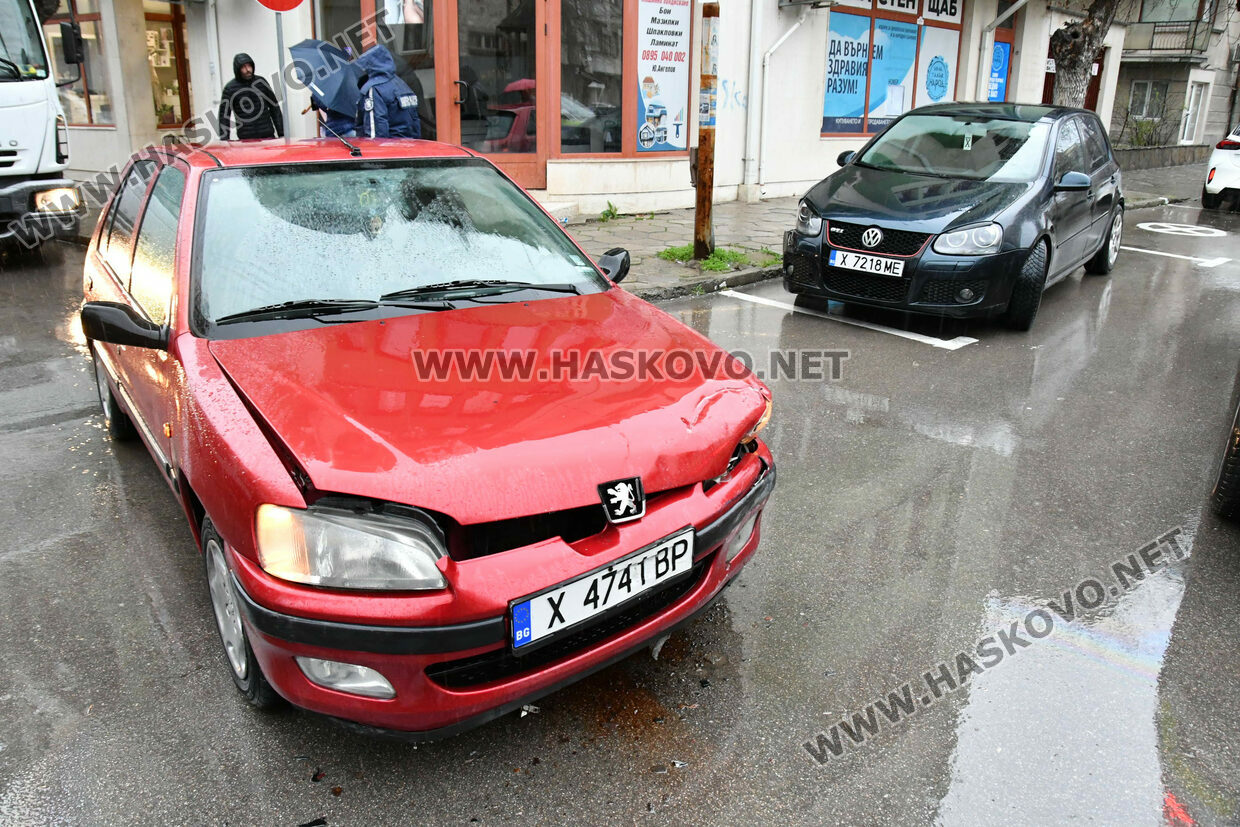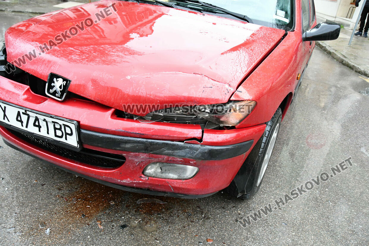 При сблъсъка между двете коли жената си е ударила главата в предното стъкло и е откарана с линейка в хасковската болница. Возещото се в „Пежото“ дете е останало невредимо.