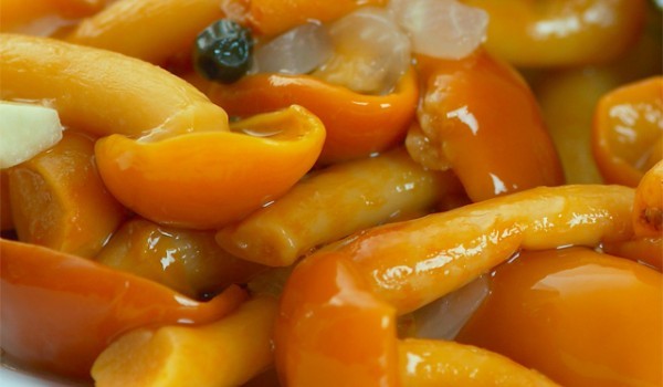 Гъбите се измиват, почистват и сваряват. Сварените гъби се нарязват на по-едро и се поставят в загрятата мазнина, след около 1-2 мин. се прибавят лукчетата, доматеното пюре и се задушават за 5-10 мин...