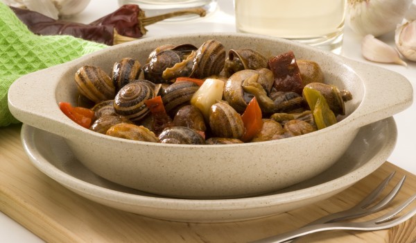 Измийте охлювите и ги сложете да се варят за около 30-40 минути. Извадете месото от черупките, а черупките запазете. В сгорещеното масло запържете наситнените лук, чесън, добавете, а след като омекна...
