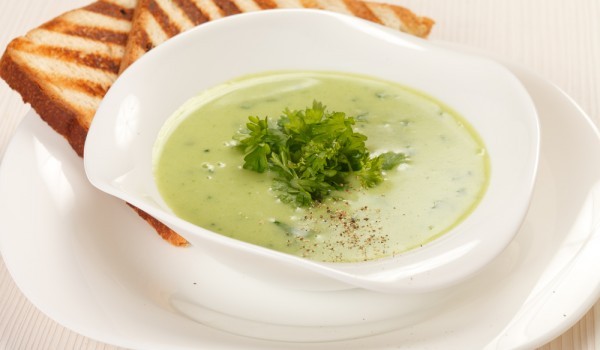 Разделяме броколите на розички. Обелваме лука, нарязваме го на ситно и го запържваме в масло. Добавяме броколите, бульона и млякото. Варим 15 мин. Почистваме праза и го нарязваме на кръгчета. Слани...
