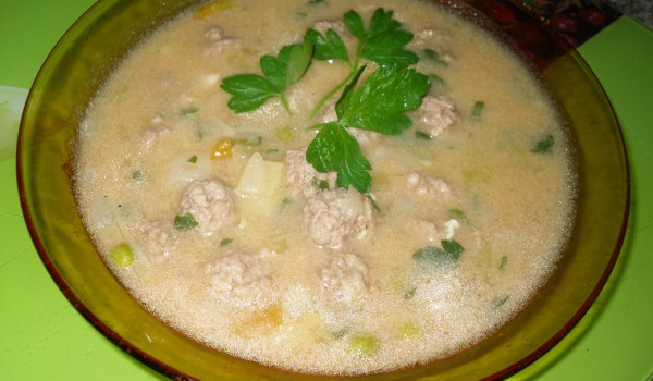 Филето се нарязва на едро, целината и лукът се наситняват. В голяма тенджера се смесват нарязаното филе, целината, пресованият чесън и лукът. Добавя се водата и натрошените кубчета пилешки бульон. До...