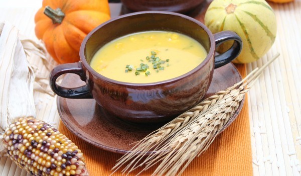 В тенджерка разтопете маслото и задушете лука и праза, нарязани на ситно до омекване. Добавете тиквата, бульона и подправките. Оставете сместа да заври. Намалете огъня и оставете да къкри без капак,...