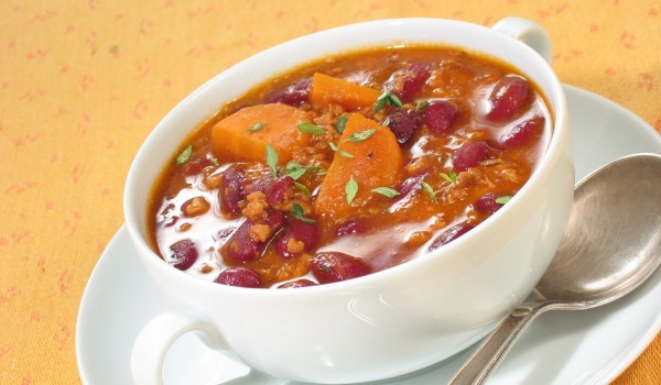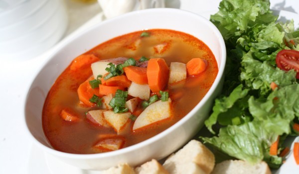 Наливаме в средна тенджера вода да ври. Нарязваме на ситно лука, червените чушки, морковите, картофите и добавяме в врящата вода 1 супена лъжица сол, няколко капки олио, малко черен пипер, бульона и о...