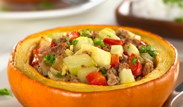 Разрежете тиквата на 2 и почистете половинките от семките. Намажете ги със зехтин, поръсете с малко индийско орехче и ги сложете да се запекат за 40-45 минути в предварително загряна на 200 г фурна. Д...