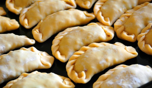 Замесете твърдо тесто от брашното, водата, яйцето и щипка сол. Омесете го много добре и го разточете на тънък лист. С помощта на чаша изрежете кръгове. За плънката запържете в малко мазнина лука и до...