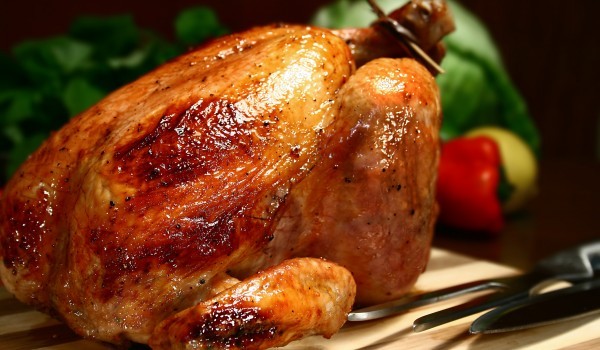 Пуйката се ръси с черен пипер и сол , пече се 20 мин. с олиото в силна фурна и 40 мин съвсем тихо. Добавя се бялото вино, китка подправки, скилидки чесън, глава лук, карамфил. Обелват се портокали...