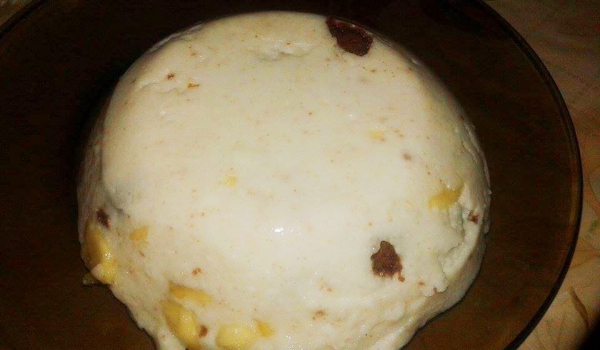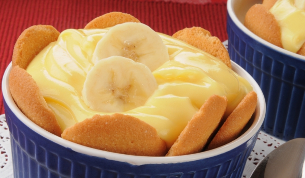 Разтворете желатина в една чаена чаша хладка вода и оставете да набъбне за 20 мин. В дълбока купа сипете млякото и захарта. Разбъркайте да се стопи и добавете ситна нарязаните банани и натрошените на...