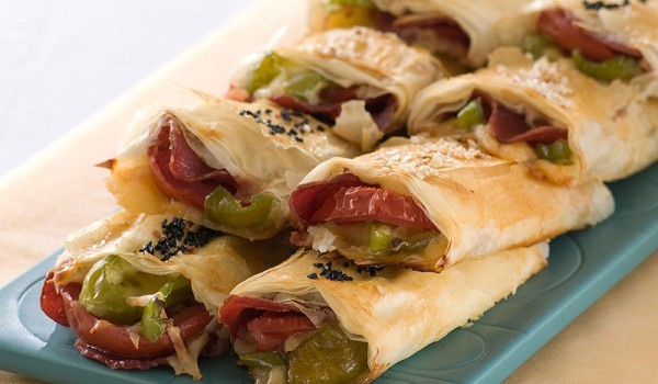 В намазана с олио тавичка се редят корите, набрани, като на всеки два реда слагаме малко от натрошеното сирене докато се запълни тавичката. Корите се нарязват на триъгълници, като за торта. В нарезит...