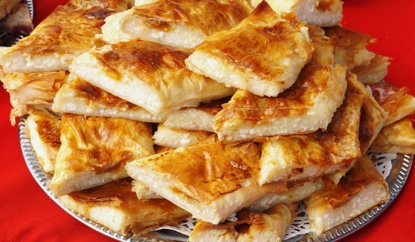 От всички продукти без последните три замесете меко тесто и го оставете да си почине 40 минути. След това го разделете на 6-7 парчета. Всяка топка се разточва на тънка кора, намазва се обилно с олио и...