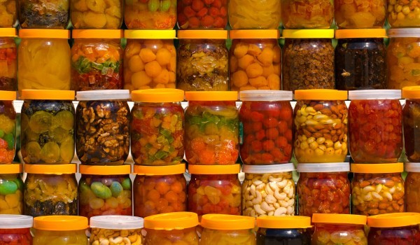 Смесете всички продукти в тенджера. Сложете ги да заврат на умерена температура. Намалете котлона и варете на слаб огън 5 мин. Разсипете зеленчуците равномерно в 6 половин литрови буркана. Отгоре пол...