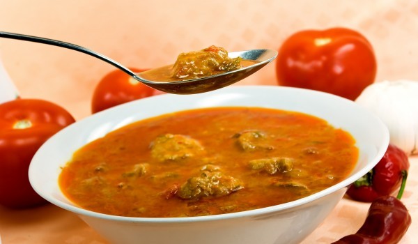 Кипнете около 1.5 л вода. Пуснете вътре маслото, след което добавете предварително обелените и настъргани картофи. Сложете и ситно нарязаните пиперки. Разтворете кубчето бульон и при нужда добавете ощ...