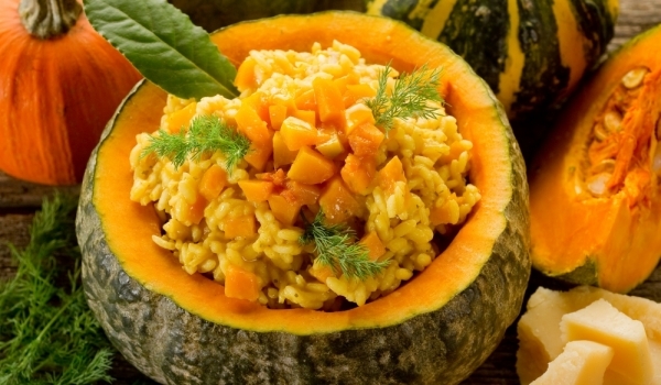 Разполовете тиквата, почистете семките и я намажете със зехтин, като поръсите и малко сол. Сложете тиквите в голяма тава, покрийте с фолио и сложете да се пекат, докато поомекнат. През това време при...