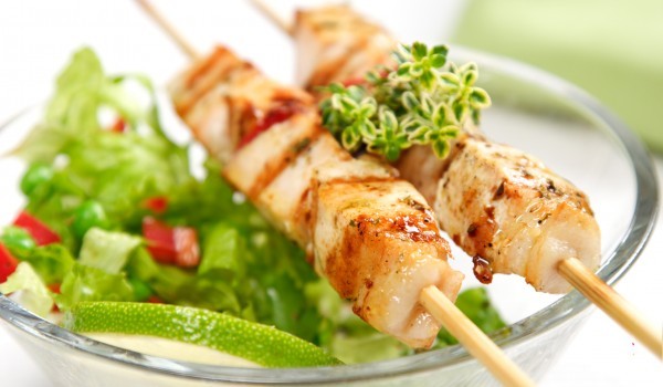 Нарязваме пилешкото филе на парчета. Смесваме майонезата с малко сол и смлян черен пипер и с тази смес овкусяваме пилешкото месо. Лукът се нарязва на подходящи за нанизване парчета, които заливаме с...