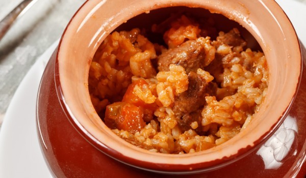 Загрейте половината мазнина и запържете от всички страни месото, нарязано на кубчета със страна 2-3 см. Извадете го, приберете го на топло, а в мазнината от пърженето сложете ситно нарязания лук. Кога...