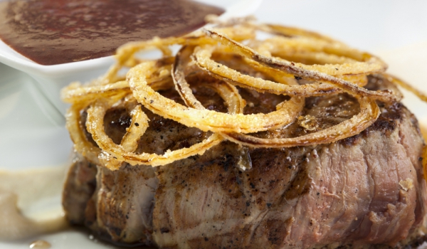 • Телешки стек с лучени кръгчета и сос Терияки