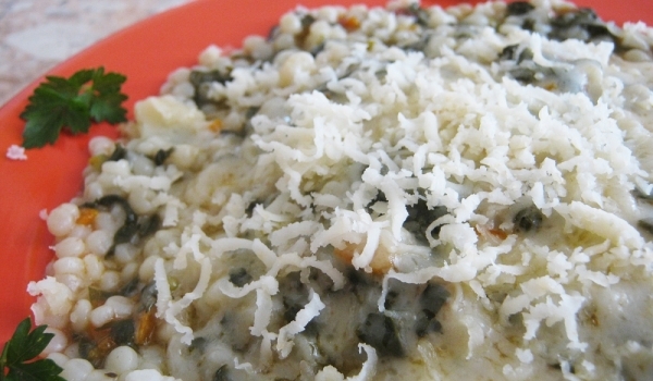 Лукът се нарязва на ситно и заедно с настъргания морков се задушава със зехтина и малко вода. След като омекнат към тях се прибавят измития и нарязан на ивички спанак, доматения сок и по една щипка от...