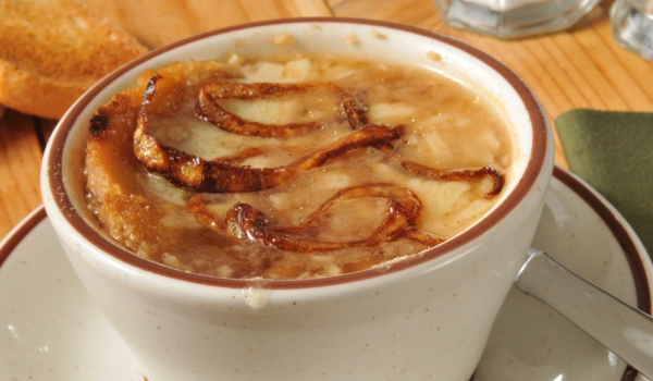 Лукът се нарязва на колелца и се запържва в мазнината. Добавят се нарязаните праз и чесън, 1 л вода, кубчетата бульон и подправките. Супата се оставя да поври половин час и се добавя виното. Прехвър...