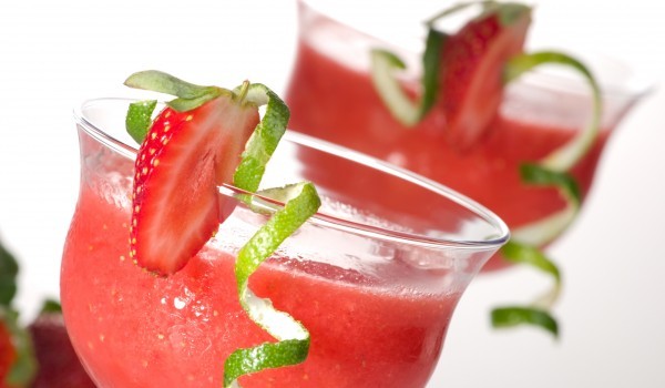 В блендер сложете и разбъркайте добре всички съставки. Във висока чаша за Маргарита изсипете коктейла и украсете с цяла или нарязана ягода.
