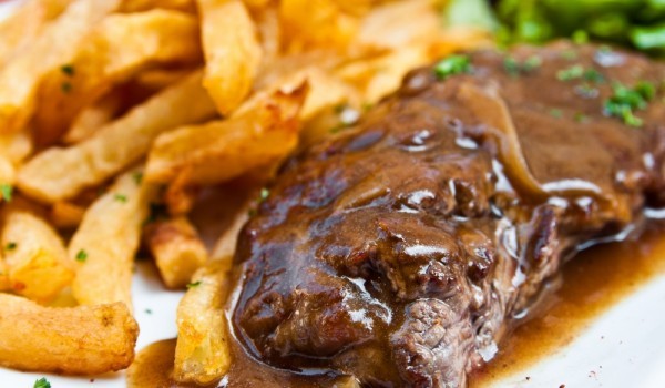 Посолете пържолите, леко ги начукайте и ги изпържете в силно сгорещена мазнина от двете страни. Извадете ги от тигана и в същата мазнина запържете 1/3 от ситно нарязания лук, моркови и репи. Наръсете...