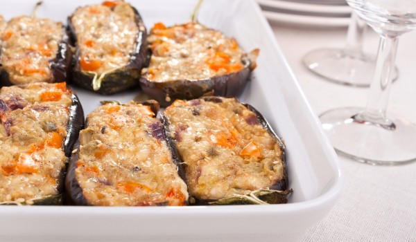 Нарязваме на дължина патладжаните и ги осоляваме, като ги оставяме да се отцедят, след това ги измиваме с топла вода и ги пържим в горещо олио. Нареждаме ги в чиния като върху всяко парче патладжан...