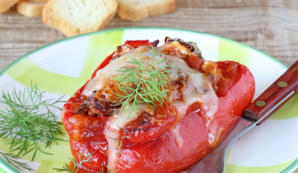 Гъбите и доматите се режат на ситно. Кашкавалът се настъргва. Чушките се срязват на две по дължина и се почистват от семките. Приготвя се плънка от нарязаните на ситно домати и гъби, отцедената царев...