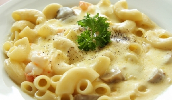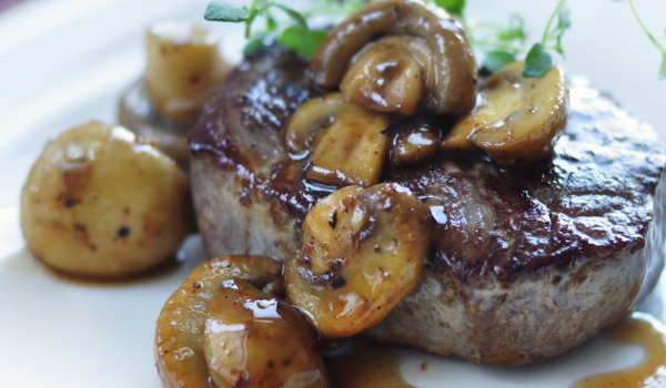 Лукът и гъбите се нарязват и се задушават до готовност. Долива се сметаната и се оставя малко да се сгъсти, като се разбърква непрекъснато. Когато се е посгъстило, се слага нарязаното на малки късчета...