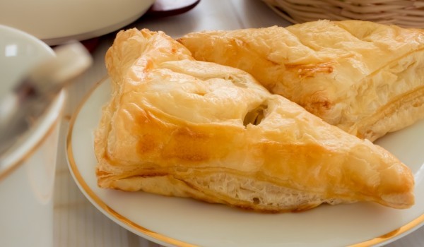 Загрейте олиото в тиган. Добавете нарязаните гъби и бекон и запържете за 6-8 минути. Поръсете с магданоз и овкусете със сол и черен пипер. Разстелете бутертестото и го нарежете на 4 големи квадрата....