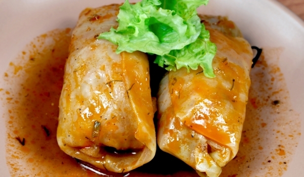 Яйцата се разбиват, добавя се брашното, млякото, солта, черният пипер и се изливат в тавичка, намазана с мазнина. Пече се 10 минути на 200 градуса. Лукът, морковите и зелето се нарязват на ситно и се...