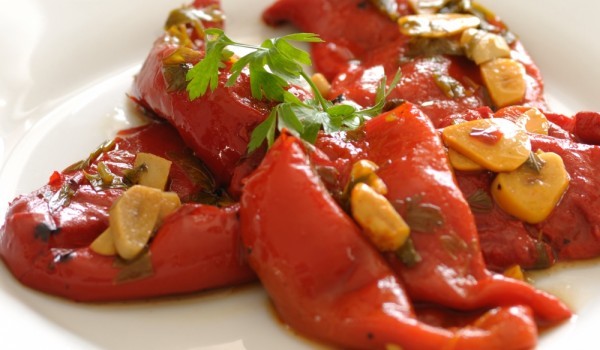 Лукът се нарязва и запържва в олиото. Добавят се чушките, начуканият чесън, солта и черният пипер. Тиганът се похлупва и се оставя зеленчуците да се задушат. Добавя се виното и се оставя отхлупен тиг...