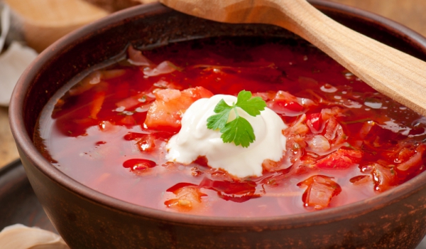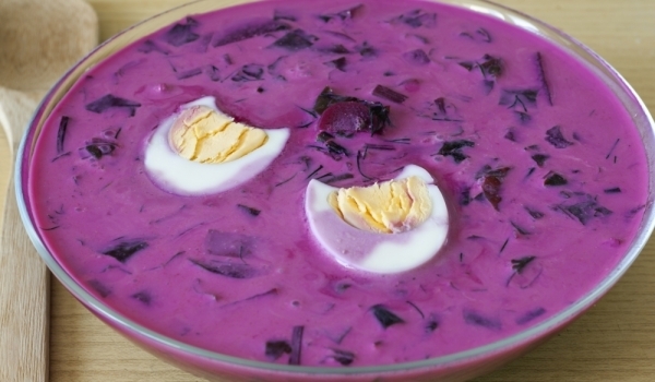 Цвеклото се обелва и се реже на ивици, зелето и лукът се режат също на ивици и се заливат с 2 чаши вряла вода. Вари се 15 минути. Изстудява се, добавя се настърганата ряпа и солта, добавя се 1 чаша с...