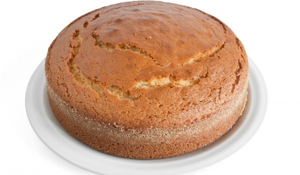 Разбийте яйцата със захарта. Смесете брашното с бакпулвера и постепенно го добавете към яйцата. Прибавете разтопеното масло. Тестото се разпределя равномерно в тавичка за печене. Отгоре наредете обле...